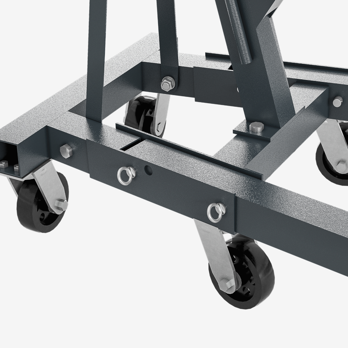 • Шесть больших колес (4 - поворотных, 2 - неповоротных) обеспечивают устойчивость и легкую маневренность при перемещении крана