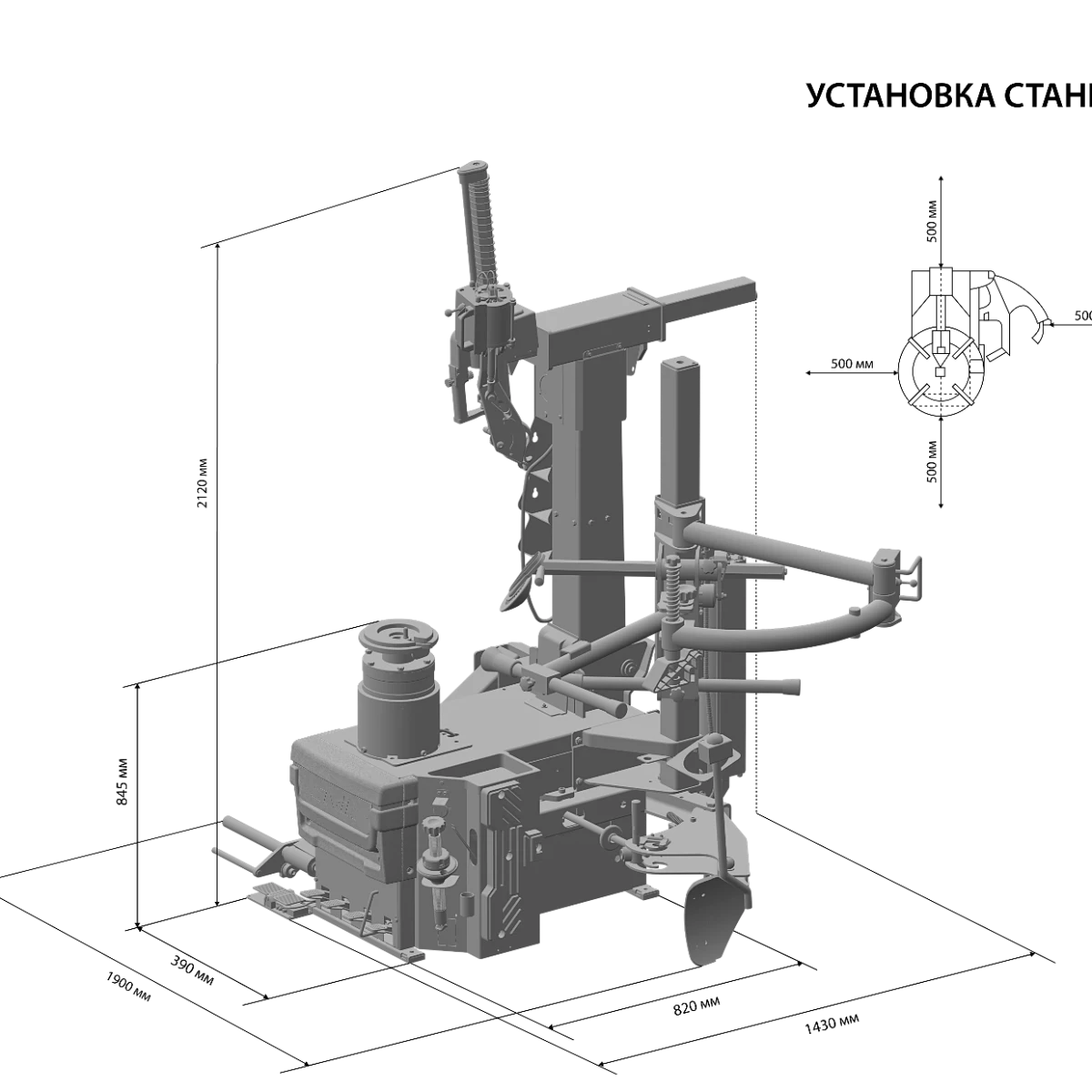 • Конструкция шиномонтажного станка позволяет работать с покрышками максимального диаметра 1100 мм и максимальной шириной до 400 мм