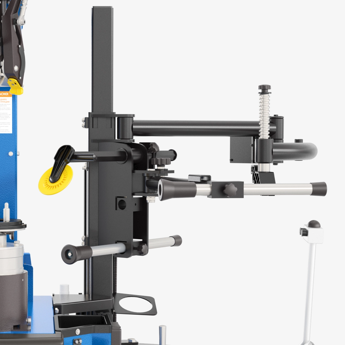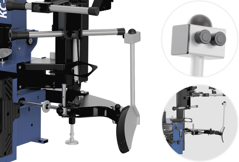 • Вспомогательное устройство «ТРЕТЬЯ РУКА» для облегчения процесса монтажа и демонтажа сложных низкопрофильных шин и шин с жестким бортом в стандартной комплектации