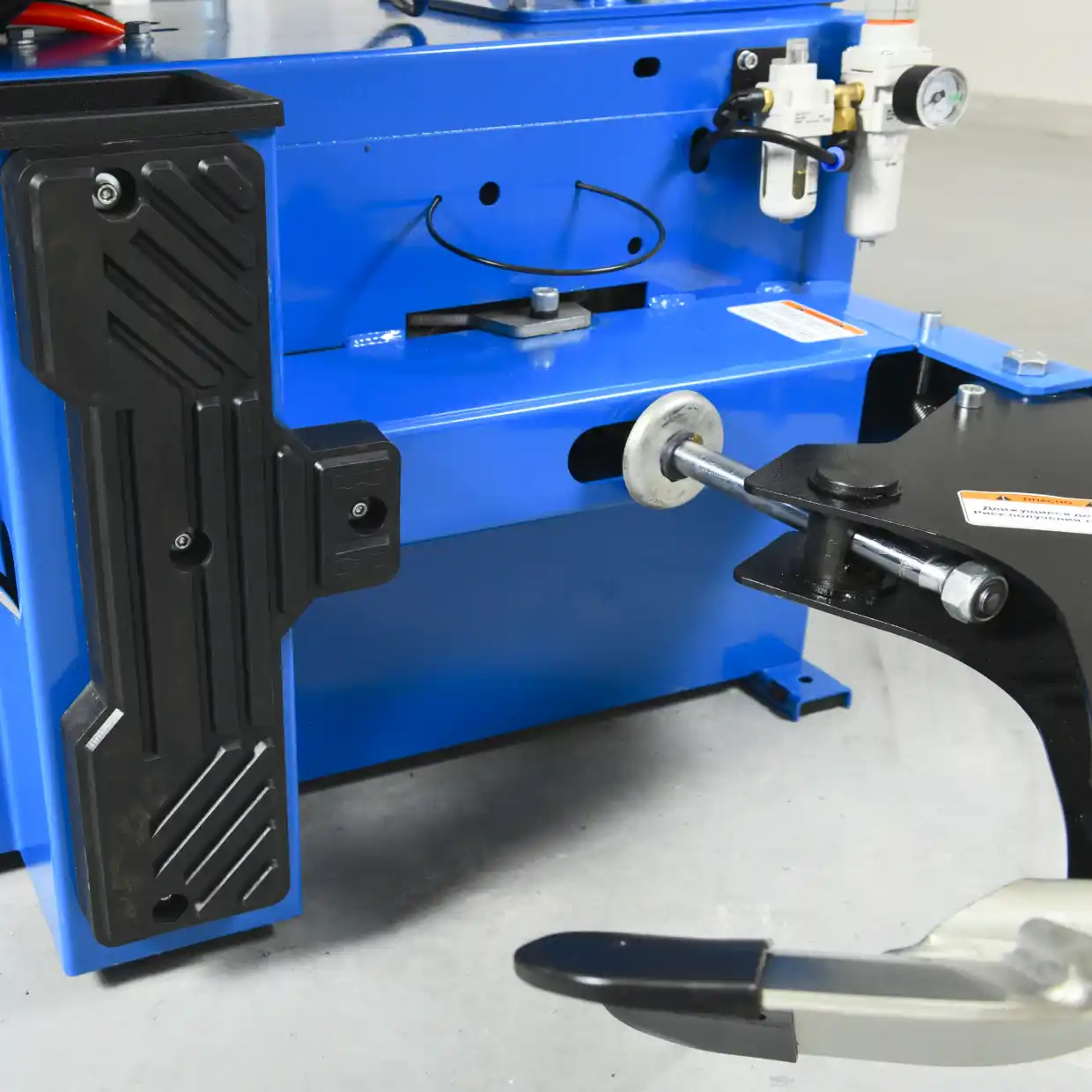 • Диаметр цилиндра 200 мм позволяет развивать усилие свыше 3 т на лопатке отжима борта, что обеспечивает уверенный отжим прикипевших шин и шин с жесткой боковиной (включая RUNFLAT)