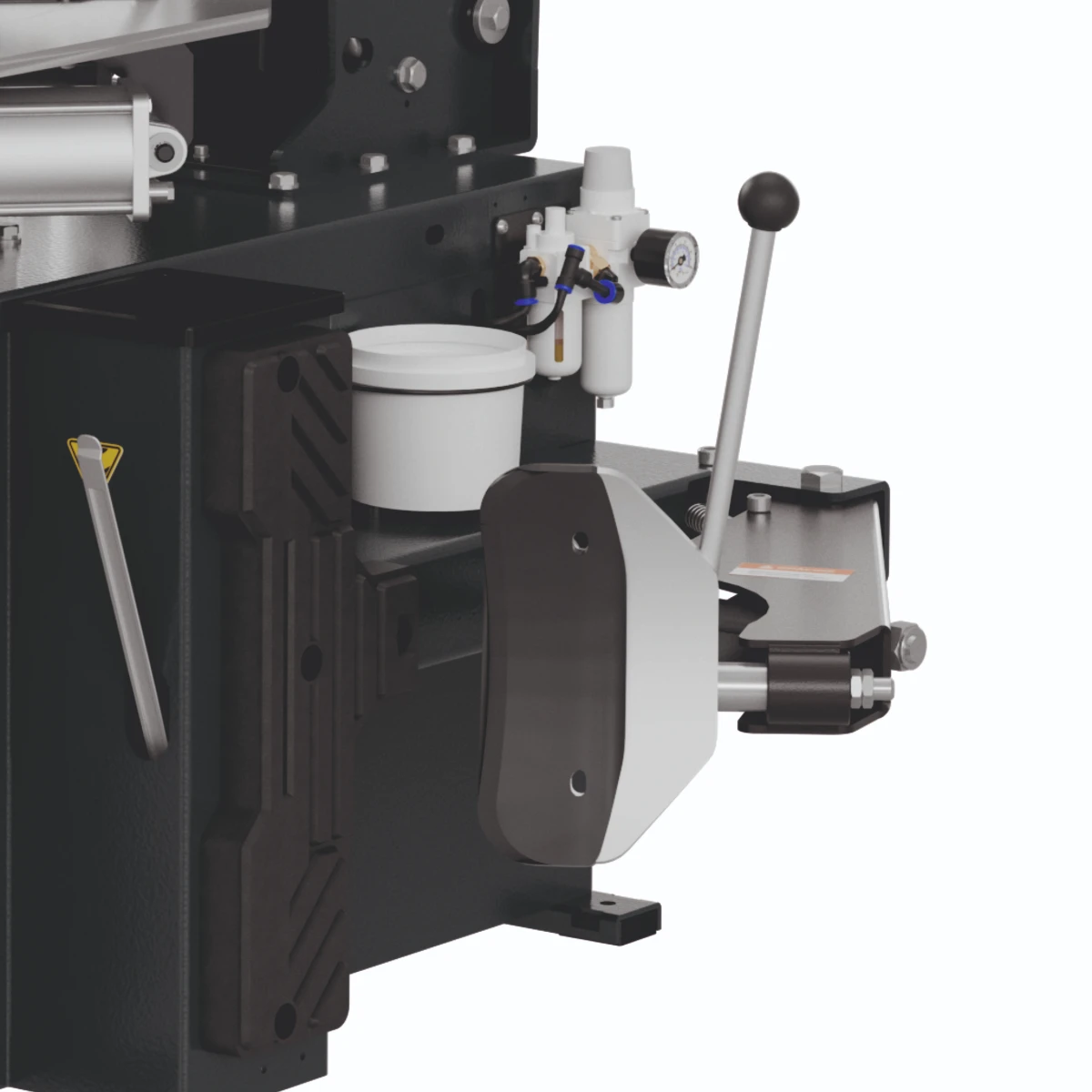 • Диаметр цилиндра 200 мм позволяет развивать усилие свыше 3 т на лопатке отжима борта, что обеспечивает уверенный отжим прикипевших шин и шин с жесткой боковиной (включая RUNFLAT).